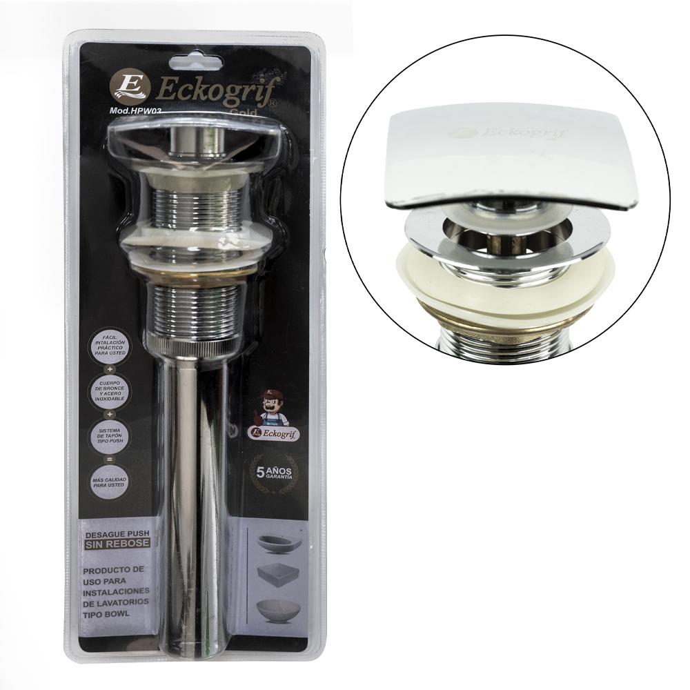 Desague Push Cuadr. Ovalin S/Reb 1 1/4X9»