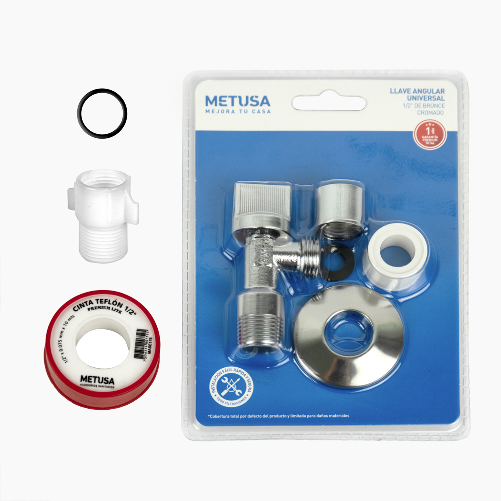 - Llave angular universal de 1/2″x1/2″ con adaptador hembra – hembra.